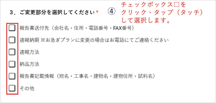 →ご変更部分の□(チェックボックス)にチェックを